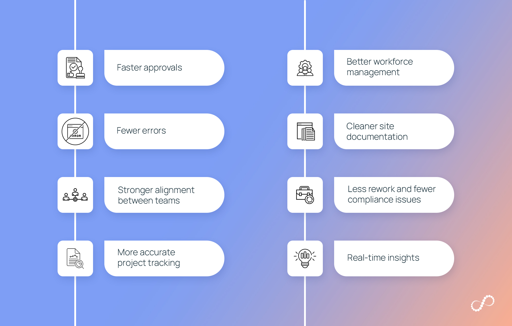 These delays affect site documentation, contract management, and compliance reviews. They also slow down decision-making and increase risk exposure across the entire project.